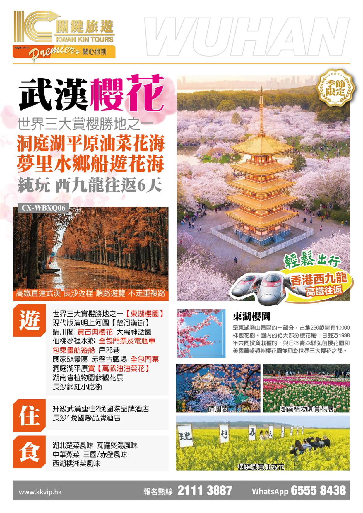 【西九往返】武漢櫻花洞庭湖平原油菜花海夢里水鄉船游花海純玩6天