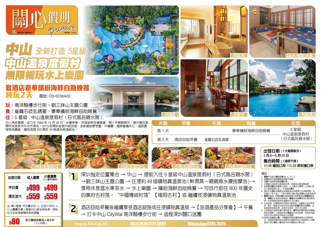 中山 全新打造 5星級【中山溫泉度假村】歎酒店豪華繽紛海鮮自助晚餐 無限暢玩水上樂園 純玩2天